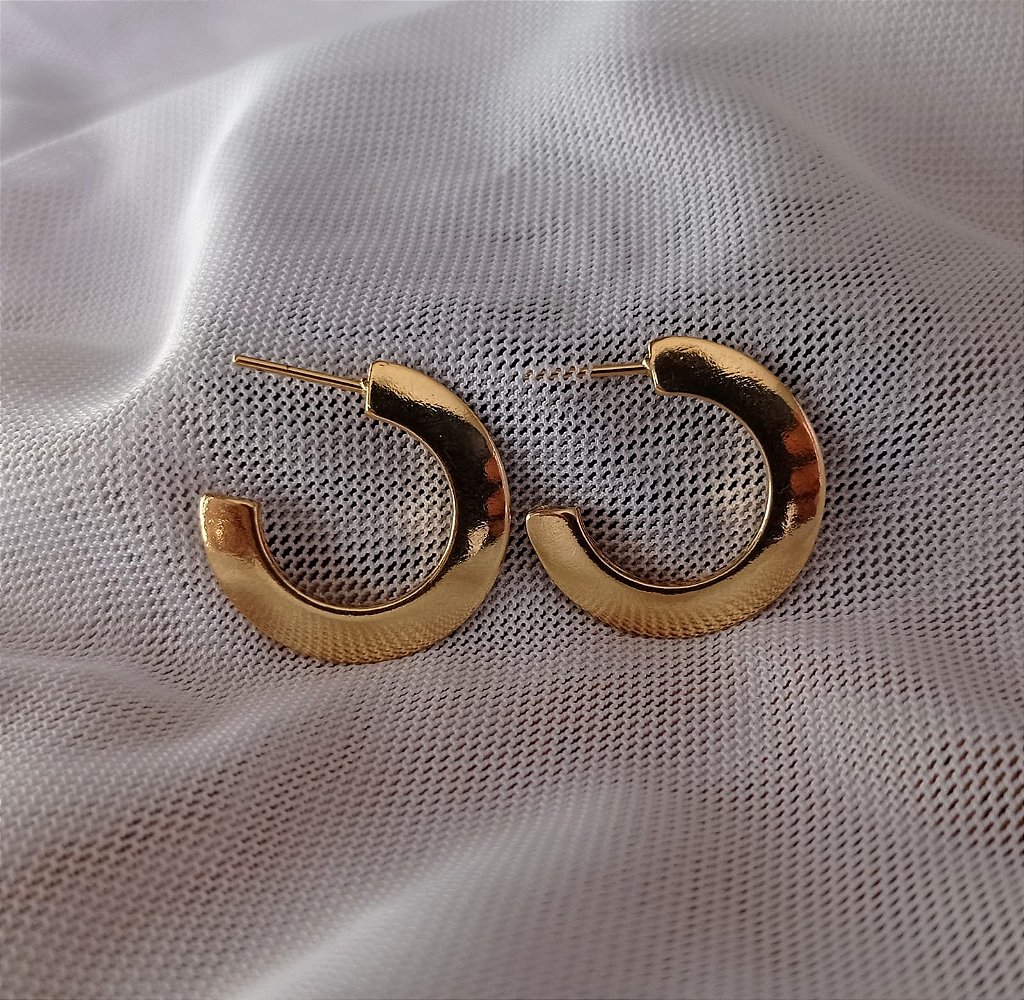 Brinco Argola estilo C em chapa lisa, banhado em ouro 18k com acabamento delicado e antialérgico. Uma peça moderna e versátil, ideal para compor produções elegantes ou adicionar sofisticação ao uso diário. Seu design clean e atemporal valoriza qualquer ocasião, oferecendo charme e requinte em cada detalhe.