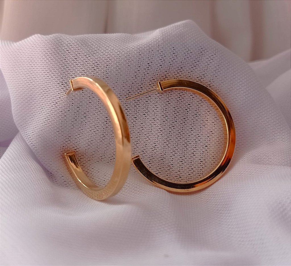Brinco modelo meia argola de fio quadrado tamanho médio. Banhado Ouro 18k Antialergico.Semijoia de qualidade, ideal para uso diário, compor looks sofisticados ou presentear alguém especial. Garantia de 6 meses no banho e em falhas de fabricaçao.
