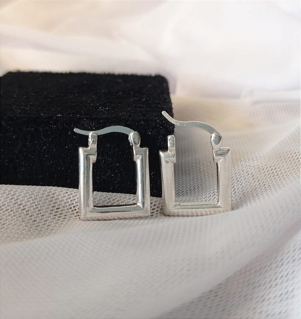 Brinco argola quadrada com banho prata. Antialergico.Semijoia de qualidade, ideal para uso diário, compor looks sofisticados ou presentear alguém especial. Garantia de 6 meses no banho e em falhas de fabricaçao.