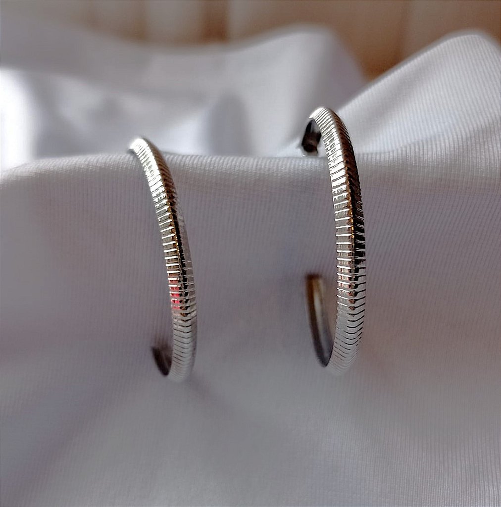 Brincos modelo argola tipo C de aço inoxidável, com banho antialérgico e garantia de 6 meses que cobre excluisivamente o desgaste natural da folheação.