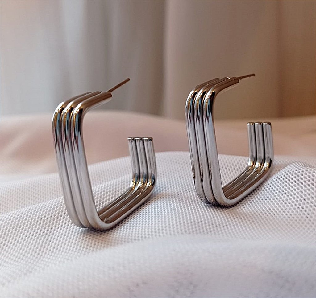 Brincos meia argola fio quadrado, de aço inoxidável com banho antialérgico e garantia de 6 meses que cobre excluisivamente o desgaste natural da peça.