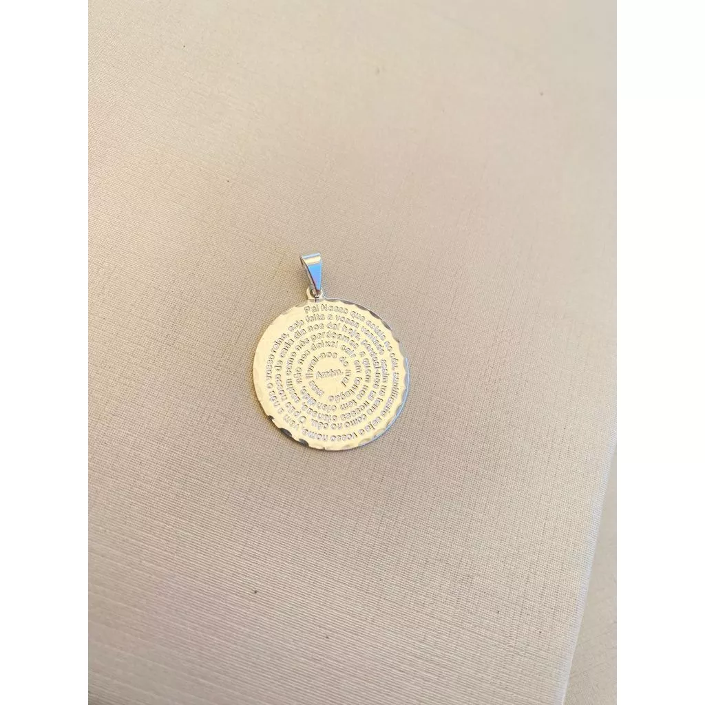 Pingente de PRATA 925, formato medalha oração do pai nosso. Uma joia para a vida toda. Garantia de 6 meses, que cobre exclusivamente o desgaste natura da peça.