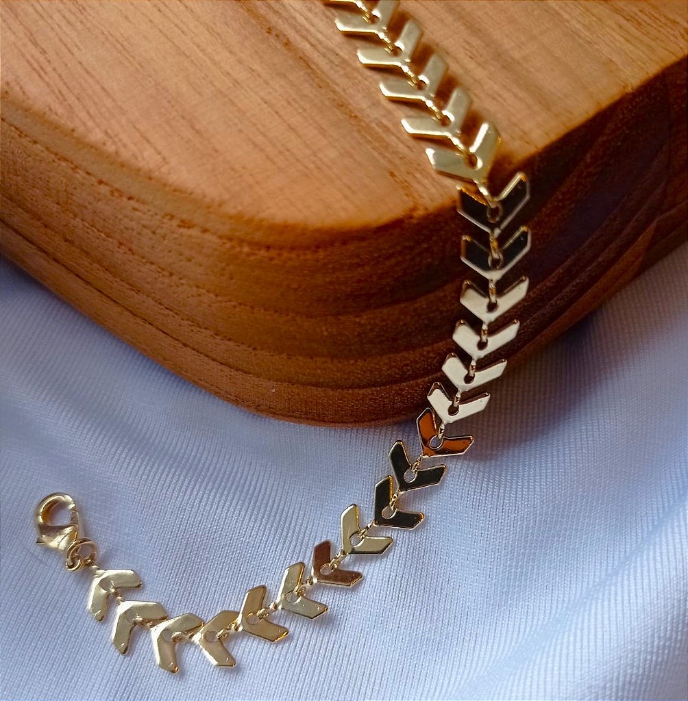 Pulseira malha escama de peixe, banhado a ouro 18k, com banho antialérgico e garantia de 6 meses que cobre excluisivamente o desgaste natural da folheação.